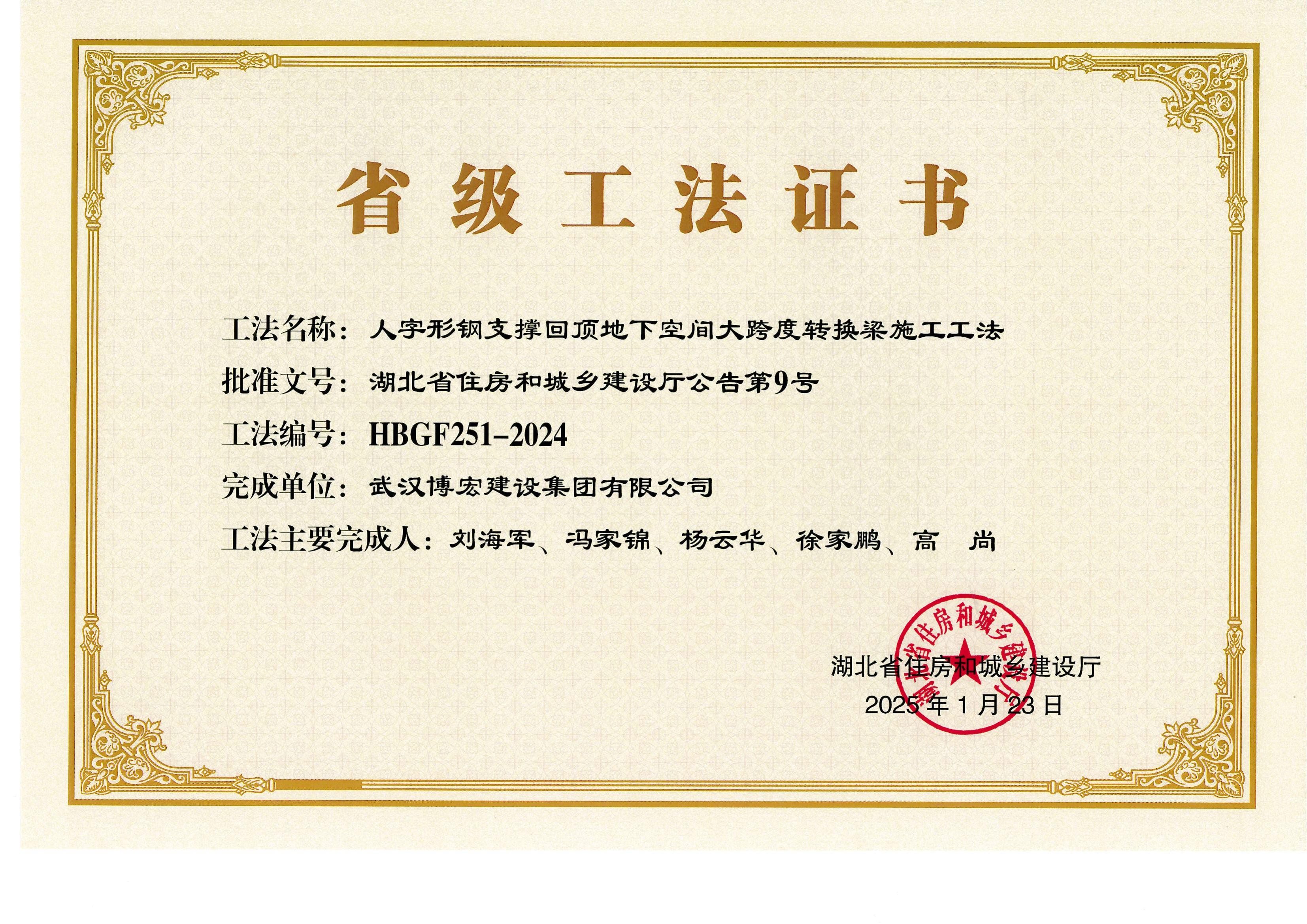 2025年湖北省住房和城鄉(xiāng)建設廳-人字形鋼支撐回頂?shù)叵驴臻g大跨度轉換梁施工工法