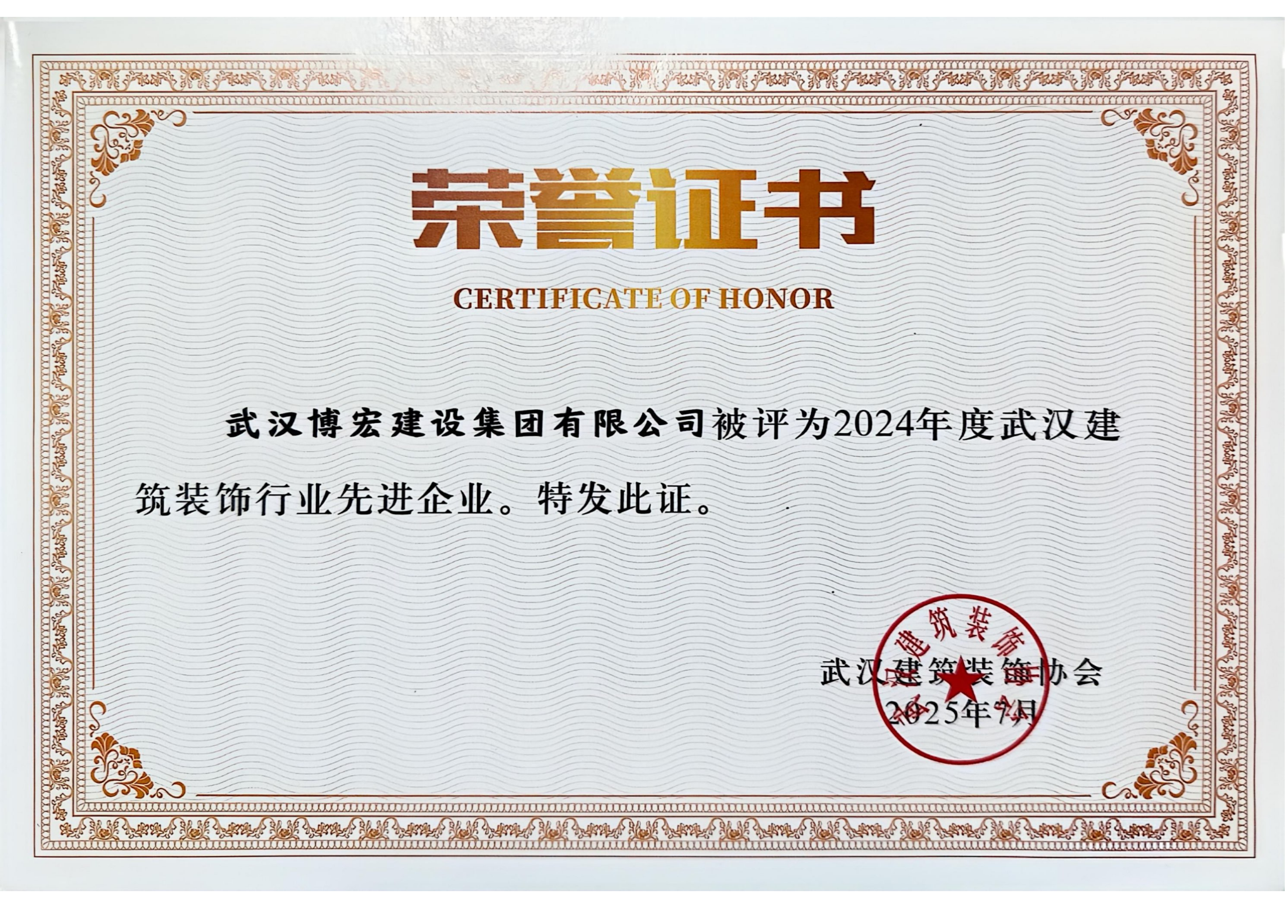 2024年度武漢建筑裝飾行業(yè)先進企業(yè)