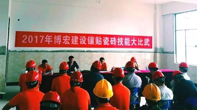 為大力弘揚工匠精神,提升操作工人技能水平,以賽促學(xué),學(xué)以致用,在公司形成良好的學(xué)習(xí)氛圍,9月30日,博宏建設(shè)瓷磚鑲貼操作技能比武大賽在四新中學(xué)項目隆重上演。