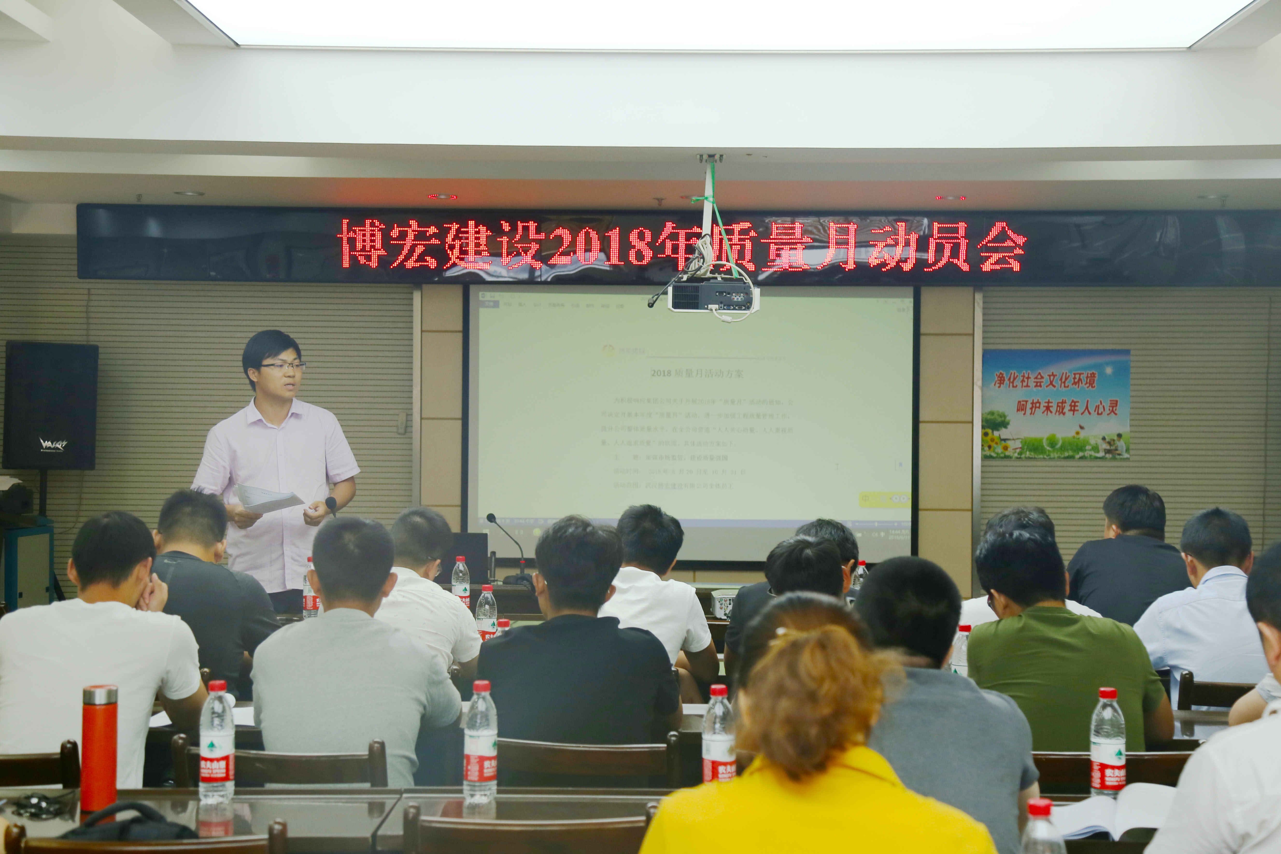 為積極響應國家號召,進一步加強工程質量管理工作,提升公司整體質量管理水平,8月31日下午,博宏建設質量月動員會暨質量溝通會在公司會議室召開,黨支部副書記郭一清、質量技術部副部長周昌文以及公司質量管理相關人員參加。