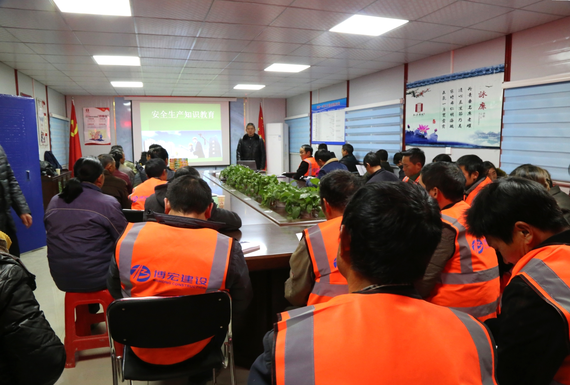 1211日晚6點,正值冬日嚴寒時段,武漢市建委、漢陽區(qū)建管站新春“三送”活動走進武漢博宏建設有限公司國博一小項目工地,為一線農民工兄弟送溫暖、送文化、送法律,漢陽區(qū)建管站站長李宏、集團公司副總經理邢榮斌出席此次活動,項目部及民工兄弟約50余人參與其中。