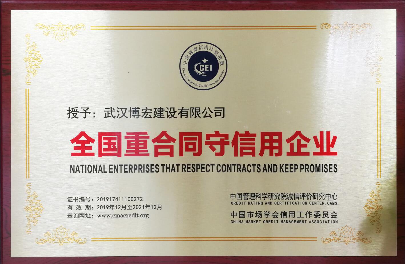 ???? 近日,博宏建設(shè)被中國(guó)管理科學(xué)研究誠(chéng)信評(píng)價(jià)研究中心、中國(guó)市場(chǎng)學(xué)會(huì)信用工作委員會(huì)共同評(píng)為“全國(guó)重合同守信用企業(yè)”,以表彰公司在嚴(yán)格按照合同內(nèi)容來實(shí)施、執(zhí)行項(xiàng)目建設(shè)和公司管理方面的誠(chéng)信行為。