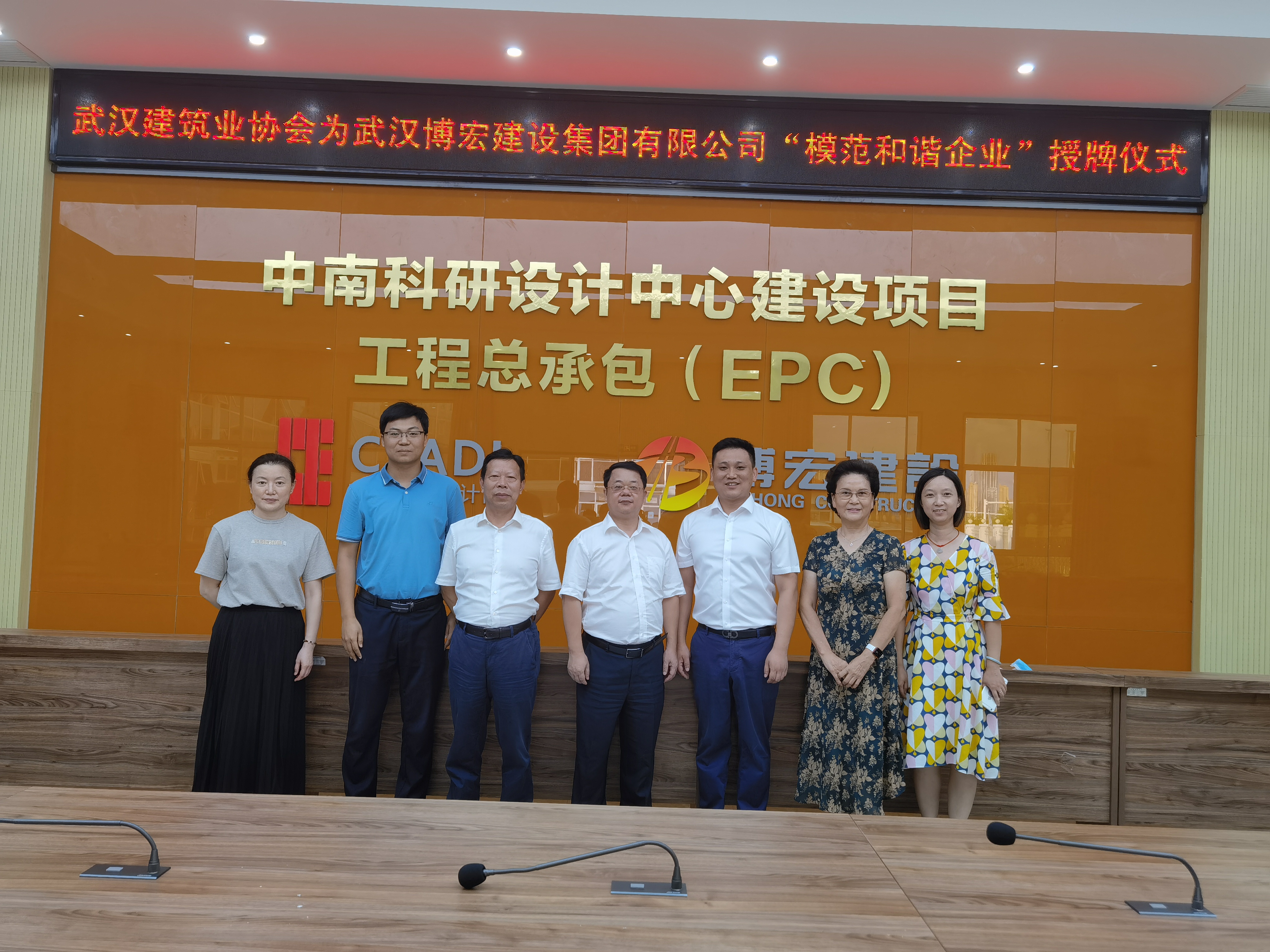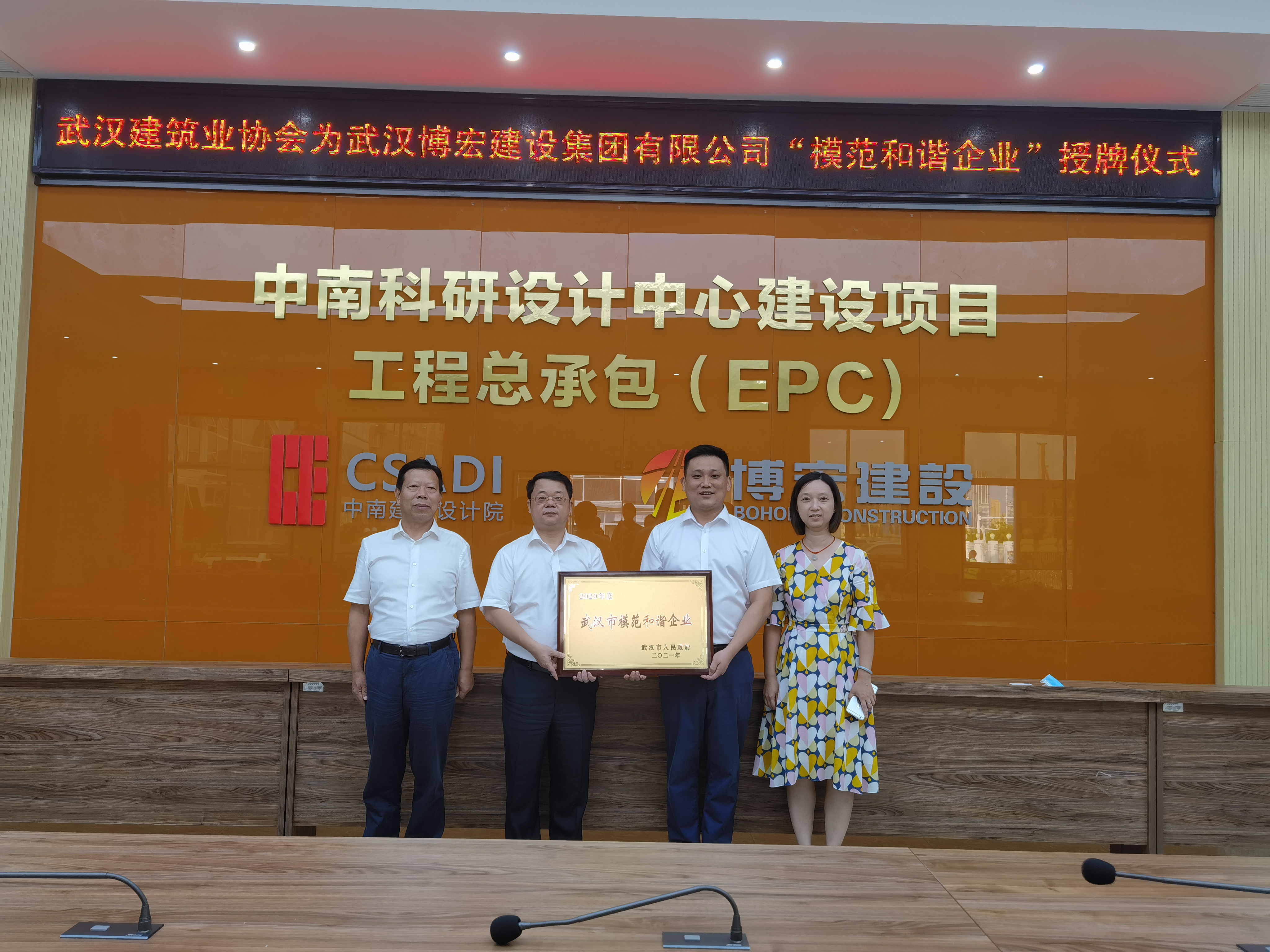 9月14日下午,博宏建設(shè)“武漢市模范和諧企業(yè)”授牌儀式在博宏建設(shè)承建的中南科研設(shè)計(jì)中心項(xiàng)目順利舉行。武漢建筑業(yè)協(xié)會(huì)副會(huì)長(zhǎng)劉慶、秘書(shū)長(zhǎng)李紅青、總工程師工作委員會(huì)副主任安維紅,博宏建設(shè)總經(jīng)理蘇琦、黨支部副書(shū)記郭一清、總經(jīng)理助理周昌文參加儀式。