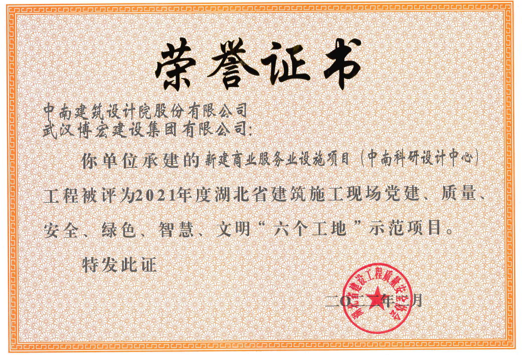近日,2021年度湖北省建筑施工現場黨建、質量、安全、綠色、智慧、文明“六個工地”評比結果正式公布,全省共計97項工程被評為示范項目,博宏建設新建商業(yè)服務業(yè)設施項目(中南科研設計中心)和博宏建設旗下合資公司湖北長投建筑工程有限公司承建的荊門龍山中央商務區(qū)7#地塊項目雙雙獲獎。