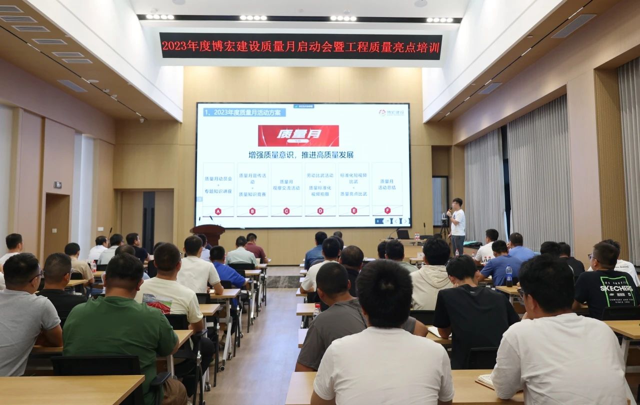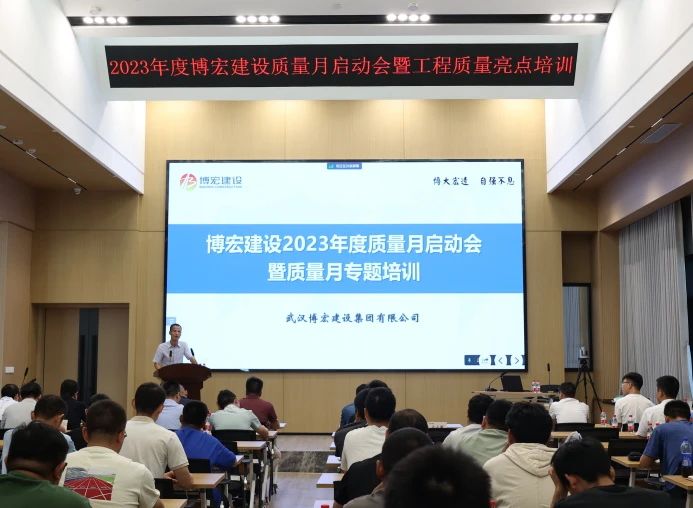 今年9月是第45個全國質(zhì)量月,為全面貫徹黨的二十大精神,落實《質(zhì)量強(qiáng)國建設(shè)綱要》部署,促進(jìn)質(zhì)量強(qiáng)國建設(shè)。9月15日下午,博宏建設(shè)舉辦以“增強(qiáng)質(zhì)量意識,推進(jìn)質(zhì)量發(fā)展”為主題的2023年質(zhì)量月啟動會暨工程質(zhì)量亮點(diǎn)培訓(xùn),黨委書記、董事長、總經(jīng)理鄒勇,總經(jīng)理助理李暉,質(zhì)量管理部部長、市內(nèi)外各項目部負(fù)責(zé)人及質(zhì)量崗位人員共計101人線上線下同步參與活動。