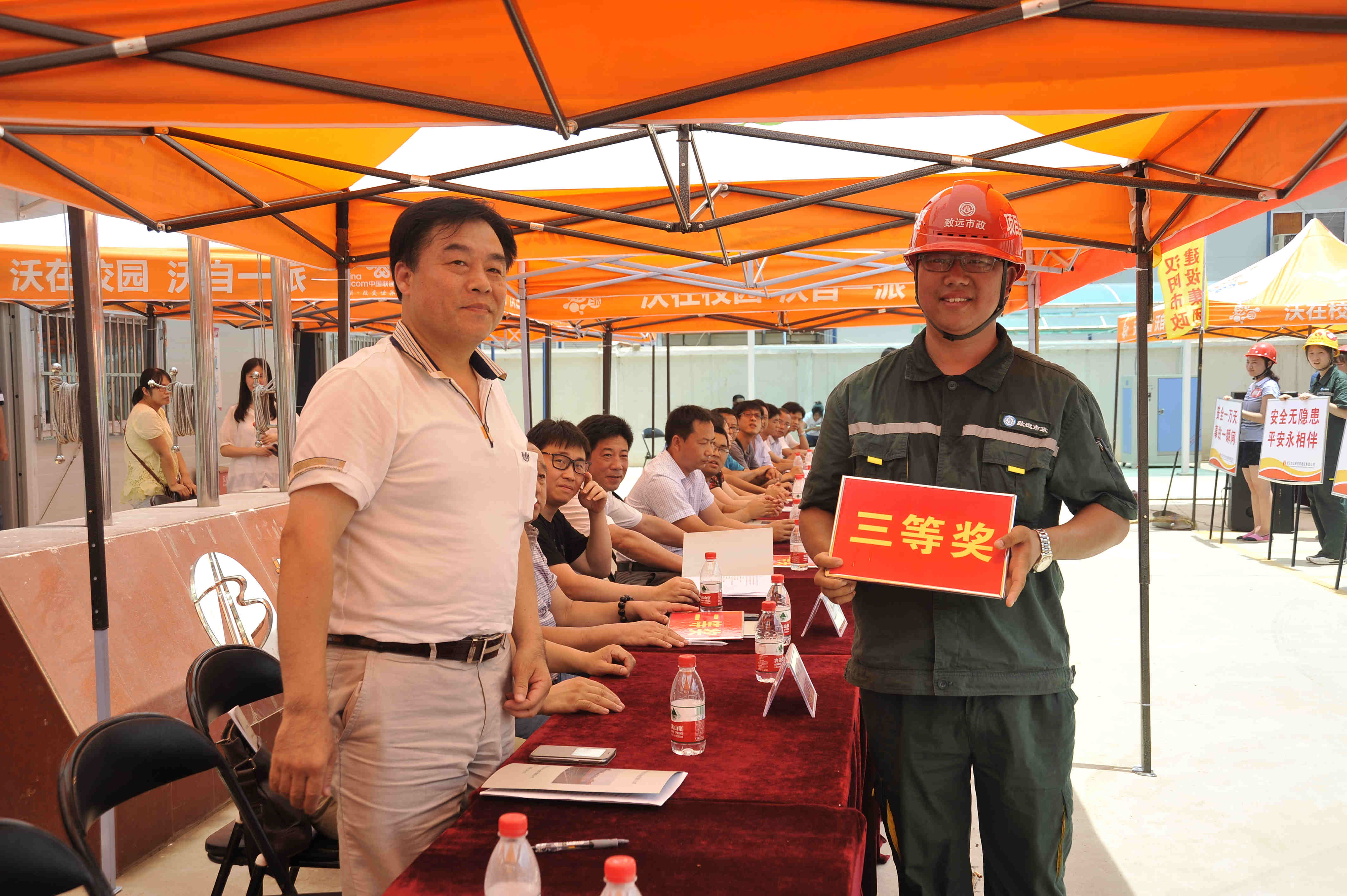6月23日,我公司英才小學(xué)項(xiàng)目部迎來了漢陽市政2015年度安全生產(chǎn)應(yīng)急演練活動,公司領(lǐng)導(dǎo)高度重視,動員全體員工積極籌備演練活動。來自漢陽市政建設(shè)集團(tuán)公司的7個(gè)單位10支參賽隊(duì)伍共計(jì)200余人參與了演練,市城建委建設(shè)工程安全站、市建設(shè)安全管理協(xié)會、市城投公司、漢陽區(qū)建管站、武漢新區(qū)投資公司等單位的領(lǐng)導(dǎo)觀看了演練比賽。演練比賽“第一名”最終由漢陽大道、解放大道下延線聯(lián)合項(xiàng)目部演練的支架坍塌應(yīng)急救援摘得。我公司圓滿的完成了賽事的各項(xiàng)后勤工作,并獲得了集團(tuán)公司頒發(fā)的“最佳組織獎(jiǎng)”。